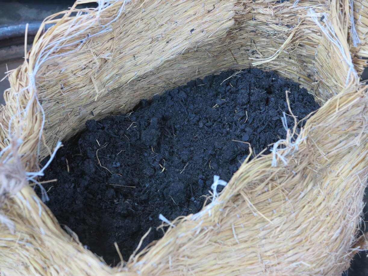 The alkaline solution lye is added to the fermented indigo leaves, which are called sukumo, and the action of the microbes reduces them into a liquid solution. This process of making the dye solution is called "ai o tateru" (building the indigo). Even in the case of workshops that use natural indigo and claim to employ natural dyeing methods, most of them use caustic soda or hydrosulfite as a reducing agent in place of a lye solution. The dye solution is completed by adding wheat bran to feed the fermentation process and the ash from burned shellfish, and then poured into 540-liter containers.