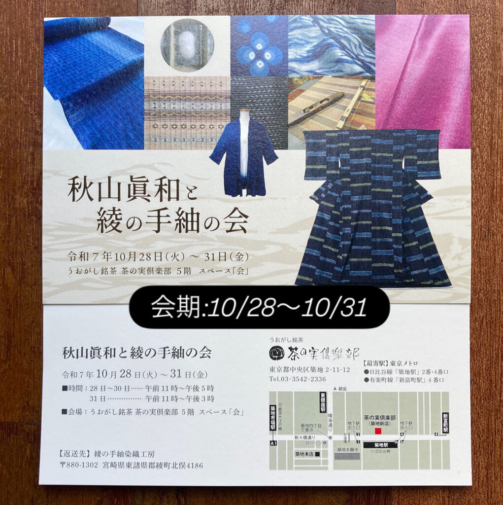 秋山眞和の着物・帯作品と工房制作の藍染め商品・貝紫染めショールなどを展示しております。